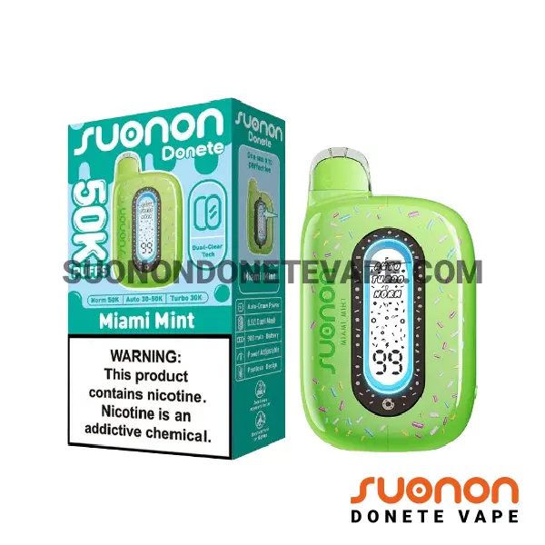 Miami Mint Suonon Donete 50k Puffs is perfect for vapers seeking refreshing mint flavor, smooth nicotine satisfaction, and extended, hassle-free vaping sessions.